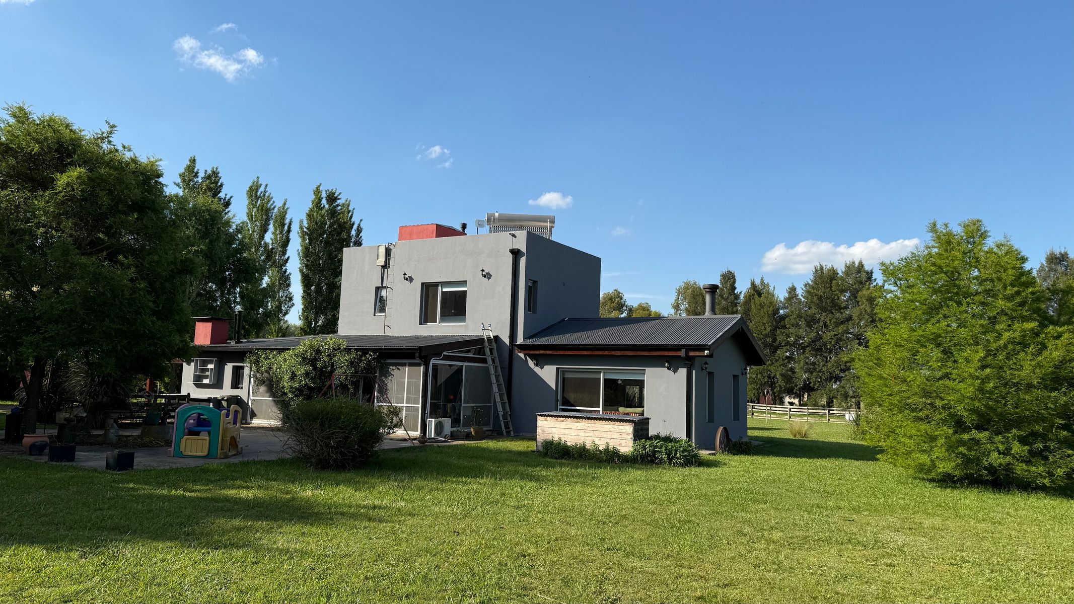 Estado Excelente 3 año/s de antigüedad 100 m² de superficie cubierta 11883 m² de superficie total 2 dormitorio/s 3 ambientes / espacios 1 cuarto/s de servicio 2 baño/s completo/s 1 toilette/s Aire acondicionado Split/Ventana Agua caliente Termotanque 1 Garage cubierto