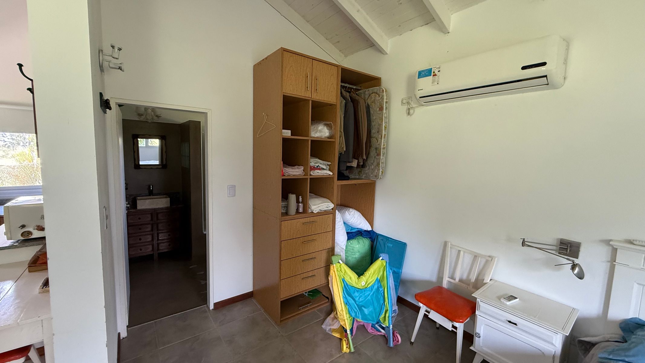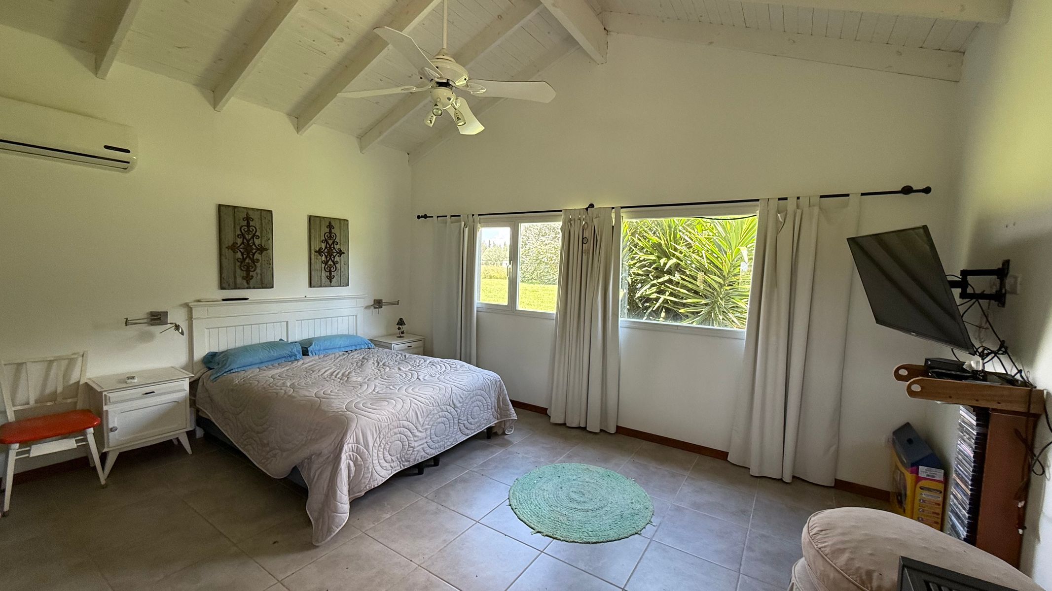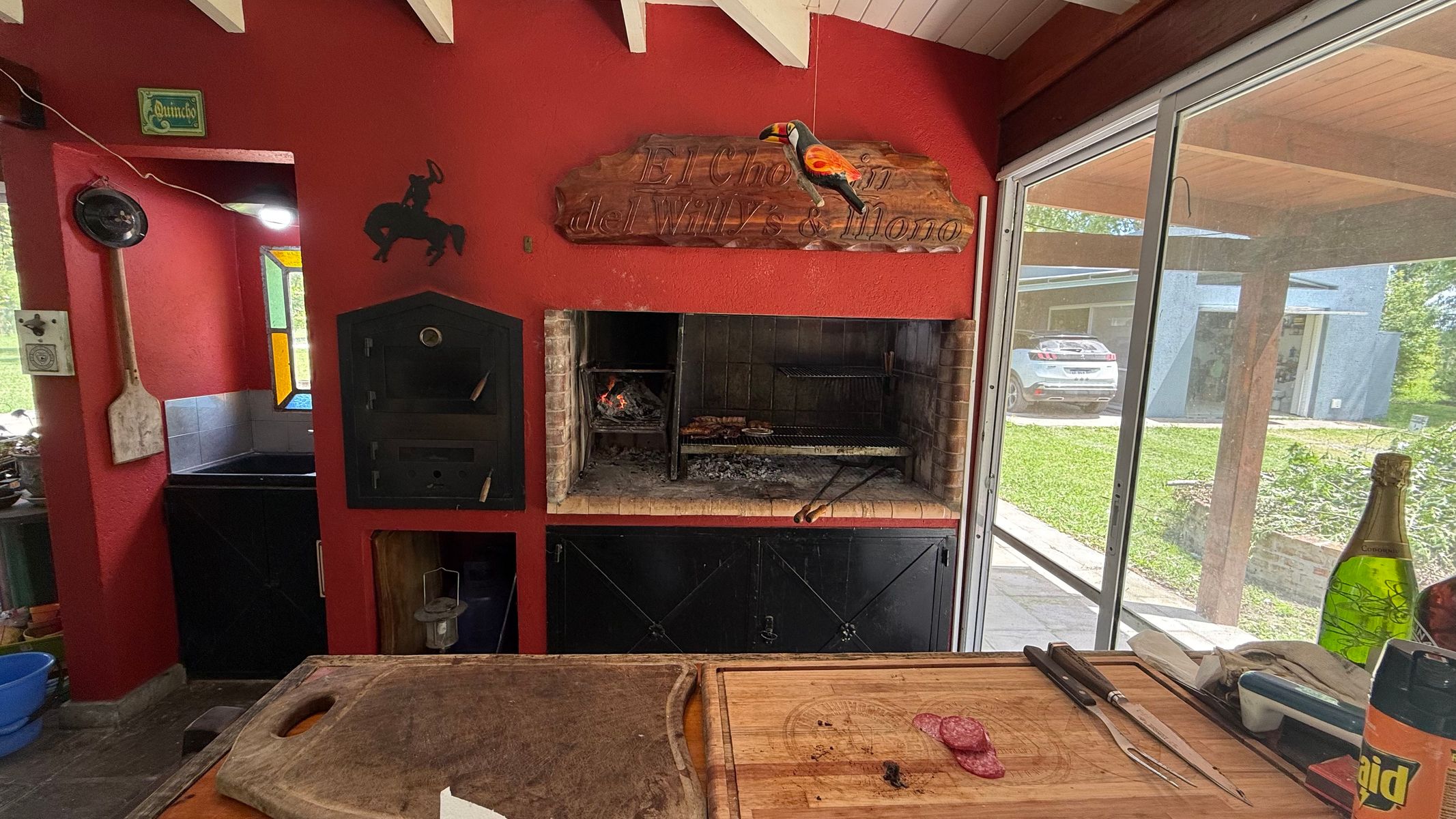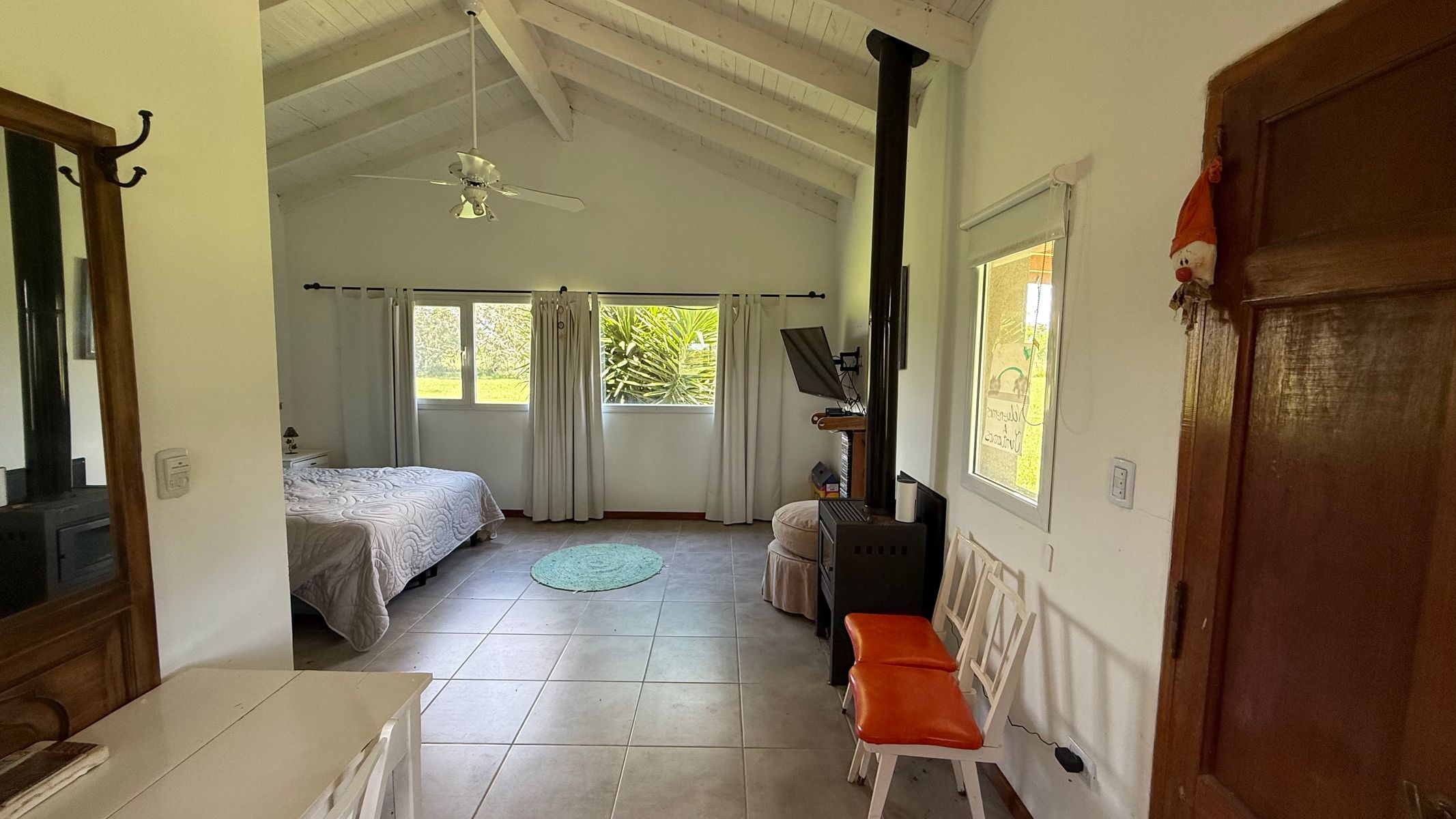 Cocina: Anafe Eléctrico de 4 hornallas, cocina de 4 hornallas y horno con tubos + horno Eléctrico Bosch. Lavavajillas y lavar ropas. Aire acondicionados FC en todos los ambientes: living (+hogar a leñas Tromen), comedor, cocina, suite, galería quincho cerrado. Suite: con placar vestidor, calefactor a leña Tromen, ante baño, ducha y bañera doble con Hidromasajes, Aire Acondicionador Frio Calor. Galería: cerrada con puertas ventanas de aluminio anodizado blanco, mosquiteros, Parrilla con bajo mueble para guardado de cosas, más pileta de lavado, y horno pizzero a leña Tromen. Aire Acondicionador Frio Calor. Casa de huéspedes: totalmente equipada, con somier, sillón cama, calefactor a leña Tromen, TV , frigo bar, mesada y anafe, Aire Acondicionador Frio Calor Semi descubierto para auto. Termotanque eléctrico, lavadero con lavar ropas y secarropas. Piscina con equipo completo y todas sus bombas, equipo Dolphin para limpieza. Bomba presurizadora. Cortinas Black out y rolles en todos los ambientes. Espacio Baúl para guardar las cosas de pileta como barre fondo, cloro etc. + pérgola que da sombra (+cortinas)Garaje para dos camionetas + Moto o cuatriciclo Con baño y mesada con pileta. Todo con agua fría y caliente. Dos galpones de madera de 3x3 para guardar tractor de 17,1" corta pasto, bordeadora y demás elementos de jardinería, herramientas y otros. Interior: 2 heladeras, 1 somier de 2x2, 2 sillones cama de 2 mts, 1 mesa comedor para 10 personas, 1 mesa galería quincho para ocho personas. Generador de Luz para toda la casa.