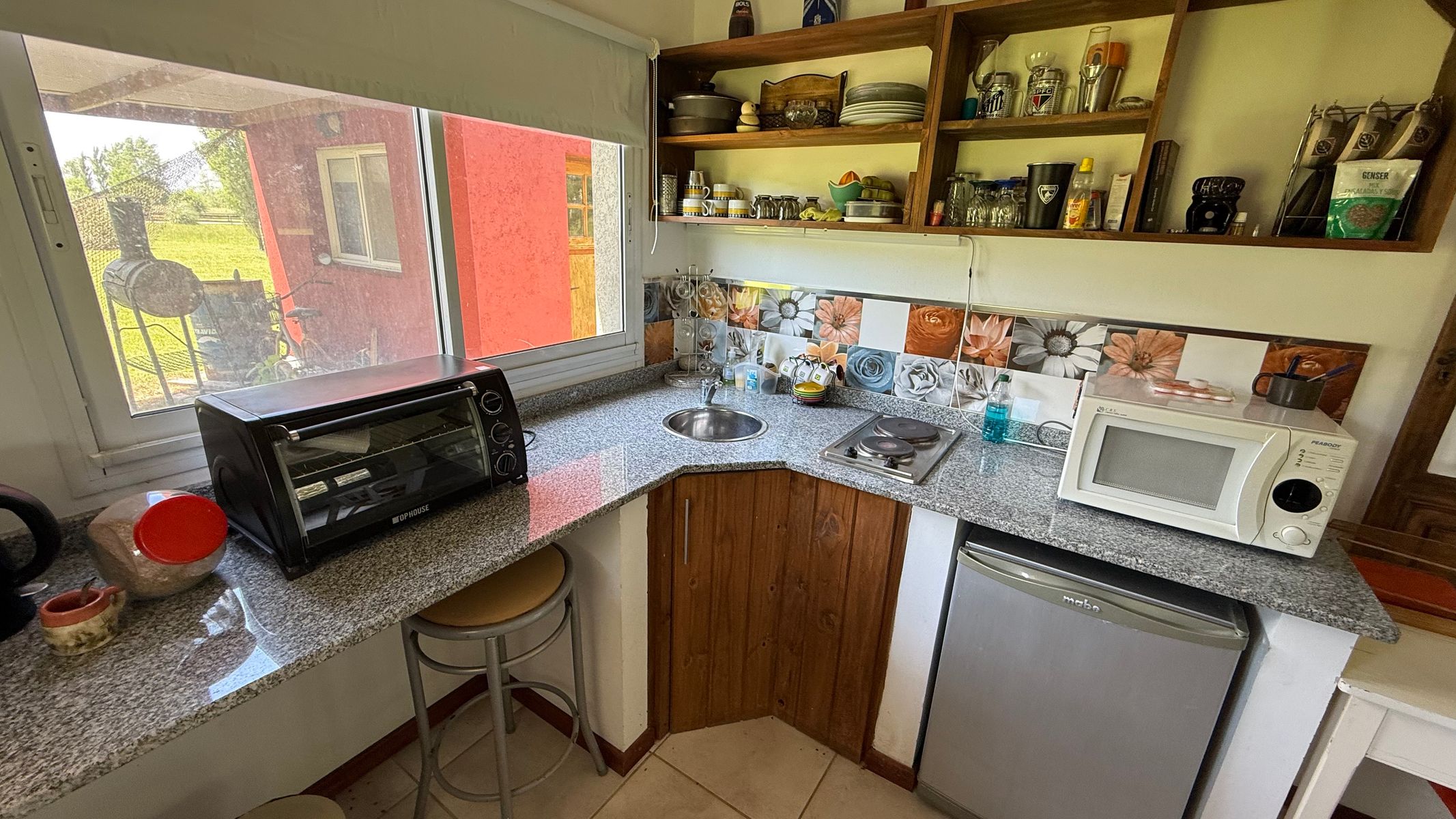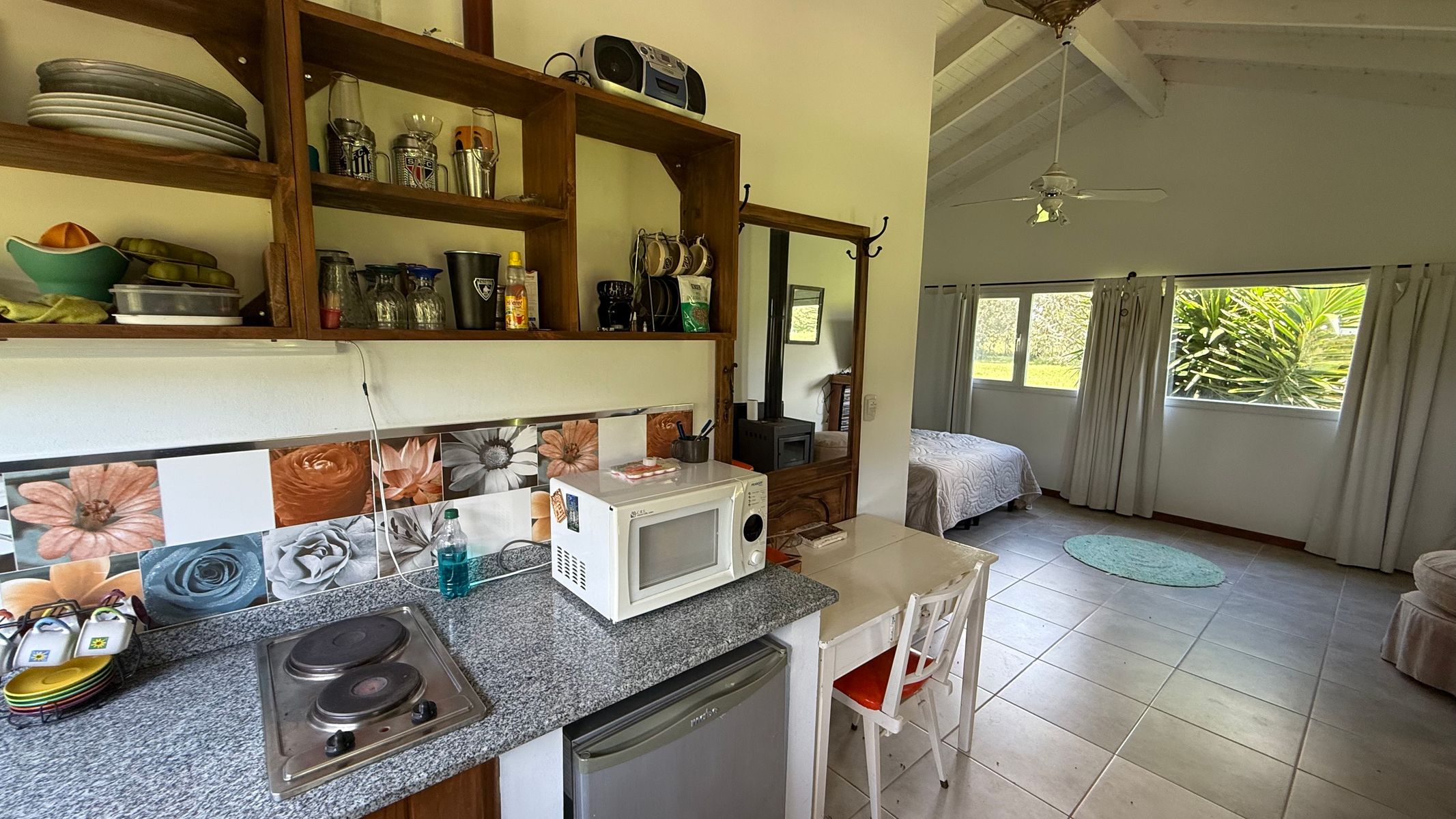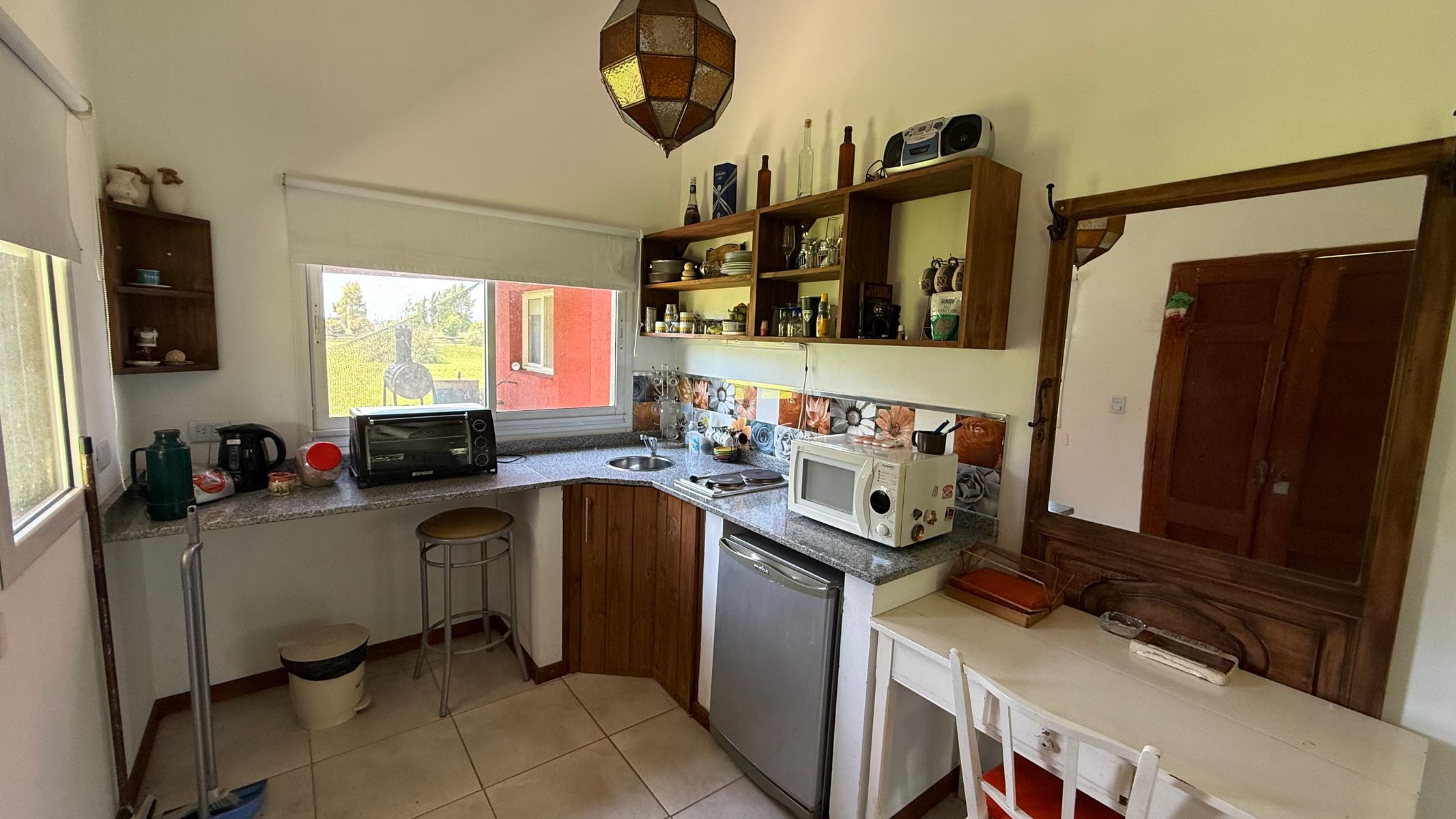 Casa de huéspedes: en una sola planta posee: monoambiente, con cocina integrada, baño completo, galeria y lavadero separado y espacio guarda coche.