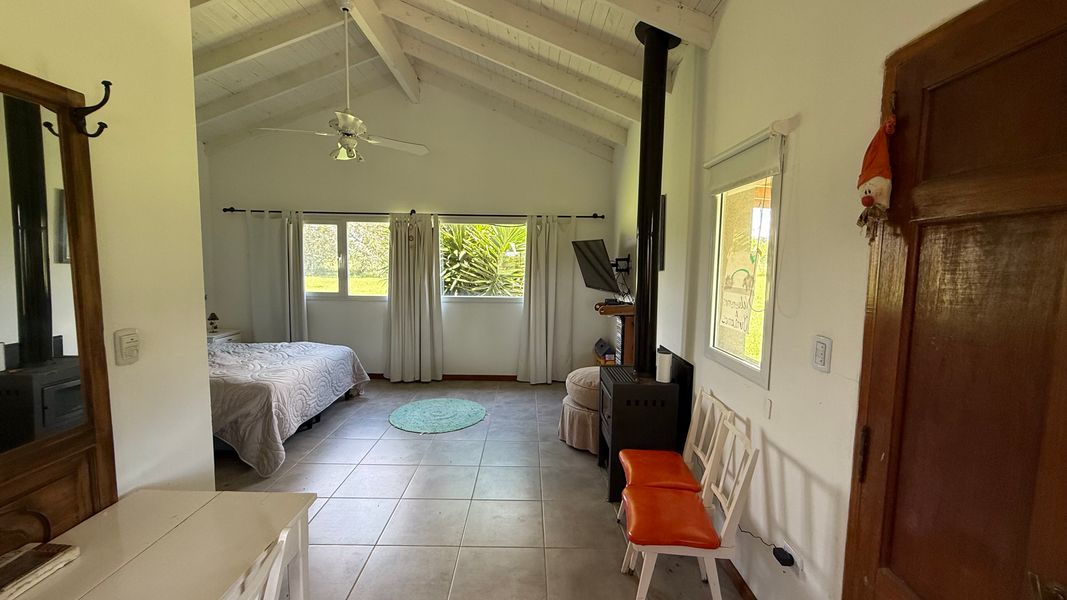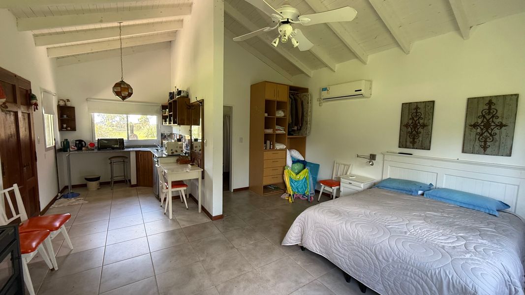 Código 3016-wp0652 | Excepcional vivienda en estado de conservación muy bueno, en 2 plantas con inmejorables vistas abiertas en "BARRIO DE CHACRAS LAGUNA VITEL". Es un lote de 11883.22m2 distribuido por 93.17x130.96x98.25x124.83 Vivienda principal posee: En planta baja: living comedor muy amplio, cocina comedor, baño compartimentado, galería cerrada, extenso jardín con pileta de 4 mts x 12 mts con solarium y deck. En planta alta: 1 dormitorio en suite baño compartimentado con jacucci, vestidor y balcón al frente. Casa de huéspedes: en una sola planta posee: monoambiente, con cocina integrada, baño completo, galeria y lavadero separado y espacio guarda coche. Garaje: Muy espacioso con cocina integrada y baño completo. Características de la propropiedad: Construcción con materiales es de 1ra calidad, grifería líneas de primeras marcas, aberturas de aluminio. buena circulación, todos sus ambientes son muy amplios con mucha luz, y bien aireados, Servicios: Luz (instalación eléctrica dividida por sectores con trifásica, tablero integral y tableros zonales), gas (mediante dos tubos de 45, solo para cocina) agua caliente con termo solar (el más grande de la línea para hogar), 2 pozos de agua independientes. Equipamiento y amueblamiento: Todo funcionando en perfecto estado Opcional mobiliario Cocina: Anafe Eléctrico de 4 hornallas, cocina de 4 hornallas y horno con tubos + horno Eléctrico Bosch. Lavavajillas y lavar ropas. Aire acondicionados FC en todos los ambientes: living (+hogar a leñas Tromen), comedor, cocina, suite, galería quincho cerrado. Suite: con placar vestidor, calefactor a leña Tromen, ante baño, ducha y bañera doble con Hidromasajes, Aire Acondicionador Frio Calor. Galería: cerrada con puertas ventanas de aluminio anodizado blanco, mosquiteros, Parrilla con bajo mueble para guardado de cosas, más pileta de lavado, y horno pizzero a leña Tromen. Aire Acondicionador Frio Calor. Casa de huéspedes: totalmente equipada, con somier, sillón cama, calefactor a leña Tromen, TV , frigo bar, mesada y anafe, Aire Acondicionador Frio Calor Semi descubierto para auto. Termotanque eléctrico, lavadero con lavar ropas y secarropas. Piscina con equipo completo y todas sus bombas, equipo Dolphin para limpieza. Bomba presurizadora. Cortinas Black out y rolles en todos los ambientes. Espacio Baúl para guardar las cosas de pileta como barre fondo, cloro etc. + pérgola que da sombra (+cortinas)Garaje para dos camionetas + Moto o cuatriciclo Con baño y mesada con pileta. Todo con agua fría y caliente. Dos galpones de madera de 3x3 para guardar tractor de 17,1" corta pasto, bordeadora y demás elementos de jardinería, herramientas y otros. Interior: 2 heladeras, 1 somier de 2x2, 2 sillones cama de 2 mts, 1 mesa comedor para 10 personas, 1 mesa galería quincho para ocho personas. Generador de Luz para toda la casa. LAS DESCRIPCIONES, MEDIDAS, VALORES DE EXPENSAS, IMPUESTOS Y SERVICIOS SON APROXIMADOS. ES POSIBLE QUE NO SE ENCUENTREN ACTUALIZADOS AL MOMENTO DE LA VISUALIZACIÓN DEL AVISO. FLORENCIA WAIMAN MATRICULA CUCICBA Nº 8844 HUGO WAIMAN MATRICULA CMCPSI Nº 5341