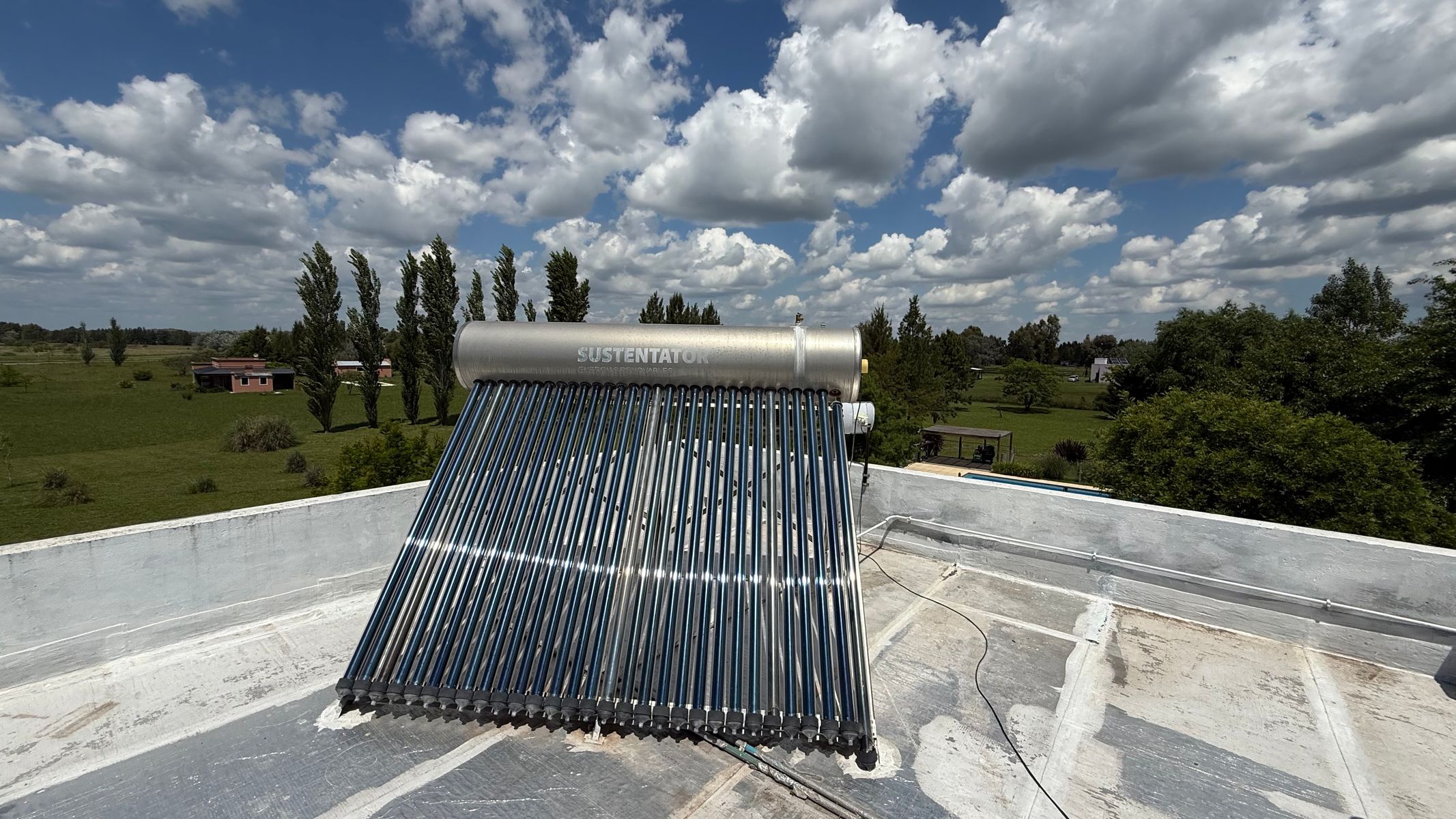 Luz (instalación eléctrica dividida por sectores con trifásica, tablero integral y tableros zonales), gas (mediante dos tubos de 45, solo para cocina) agua caliente con termo solar (el más grande de la línea para hogar), 2 pozos de agua independientes.